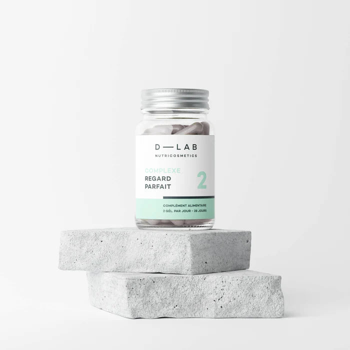 Complexe Regard Parfait est un complément alimentaire nutricosmétique de D-LAB Nutricosmetics formulé pour agir spécifiquement sur le contour des yeux. Il réduit visiblement les cernes, les poches et les rides, tout en défatiguant le regard et en donnant un effet plus lissé et lumineux à la peau délicate autour des yeux.