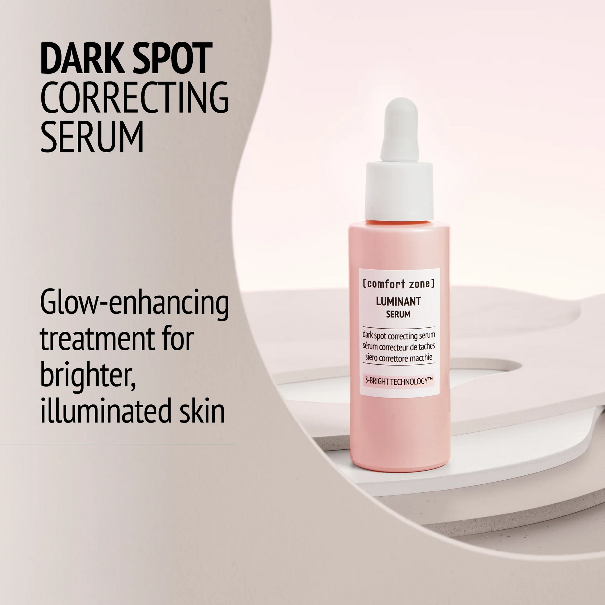 Le Sérum Luminant est un soin intensif hautement concentré, spécialement formulé pour corriger visiblement tous types de taches pigmentaires dès 28 jours d’utilisation*. Grâce à la technologie innovante 3-BRIGHT™, issue de la synergie entre la science dermatologique et le pouvoir des ingrédients naturels, ce sérum illumine le teint tout en atténuant efficacement les irrégularités de pigmentation.