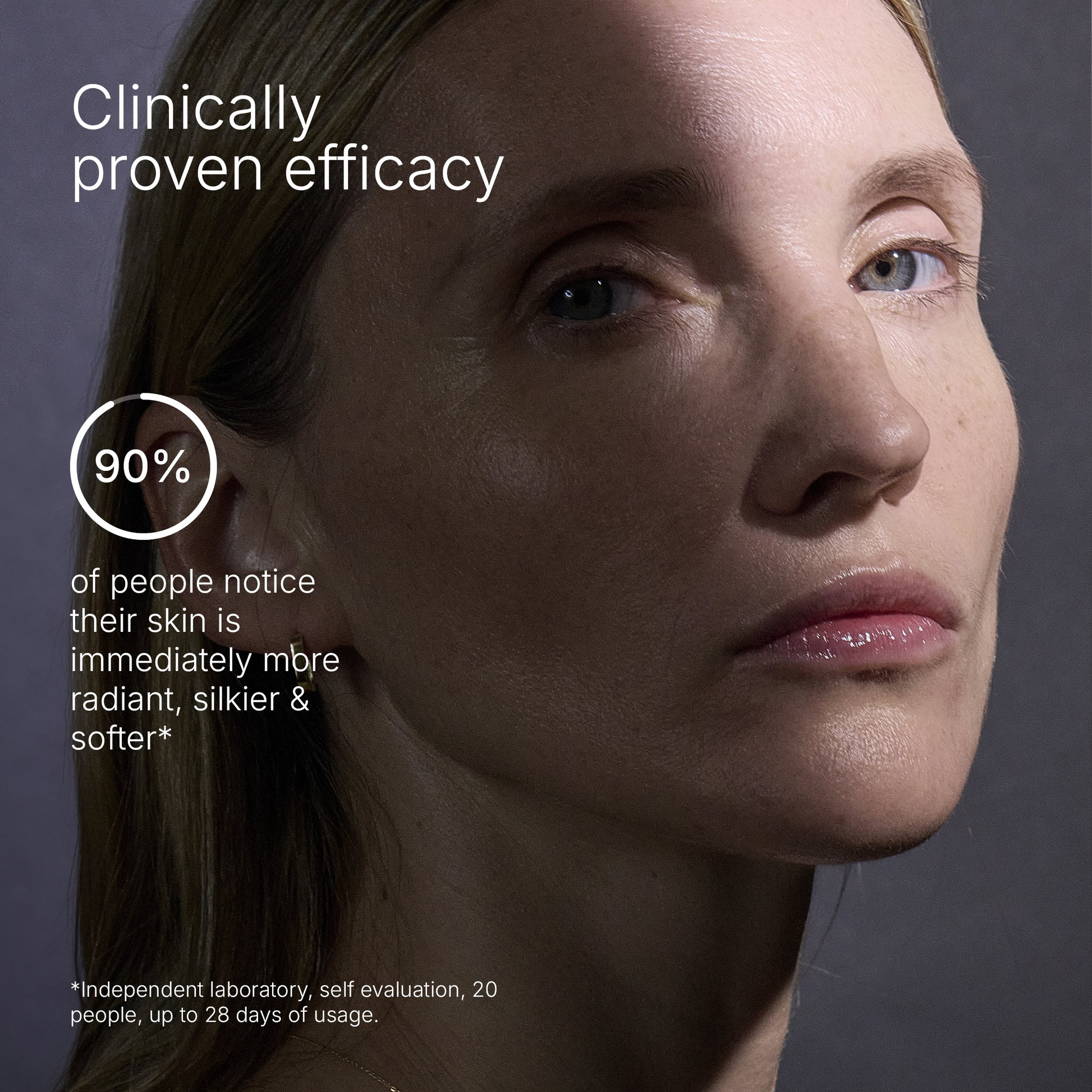 - Améliore l’éclat et la douceur immédiate de la peau : jusqu’à 90 % des utilisateurs constatent une peau plus soyeuse dès la 1ʳᵉ utilisation.